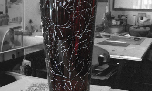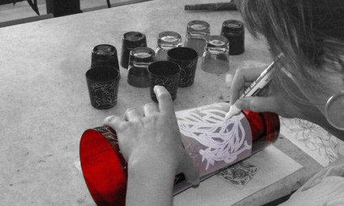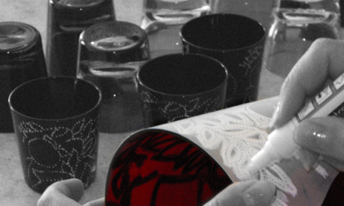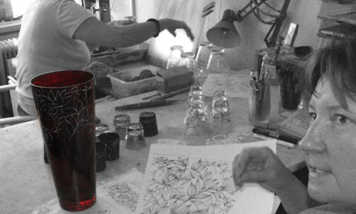 This video shows an ARTĚL artisan painstakingly hand-drawing our popular Verdure motif. Once complete, drawings are transferred to their corresponding glass shape (a Medium Vase in this case) and used as a template to guide the hand-engraving process.